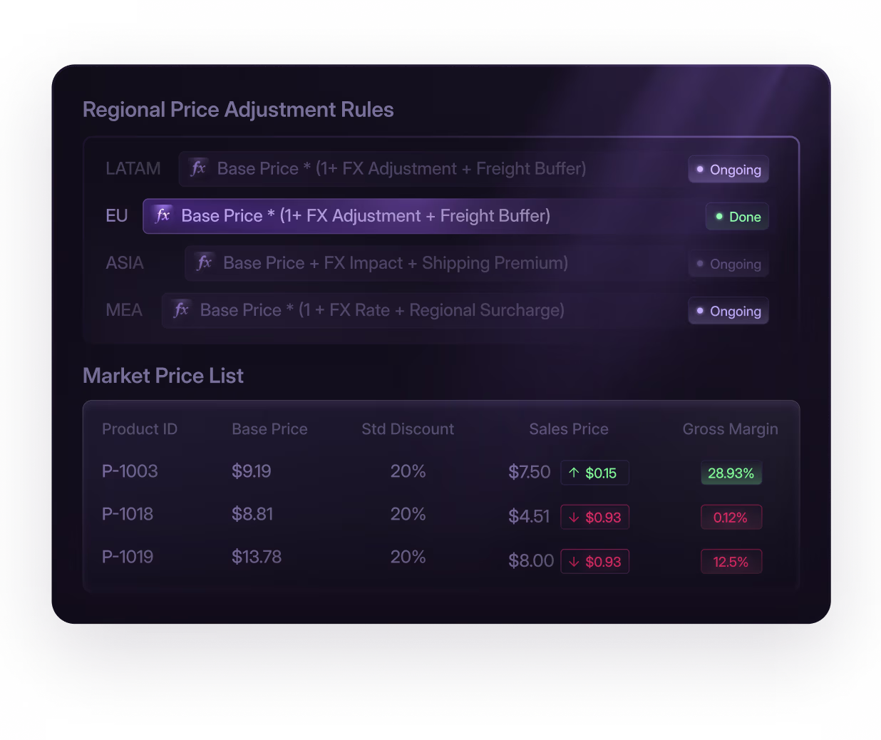 All of them. Finance teams track profitability, pricing teams design and approve price strategies and price lists, and sales teams use guided insights to quote faster and protect margins.