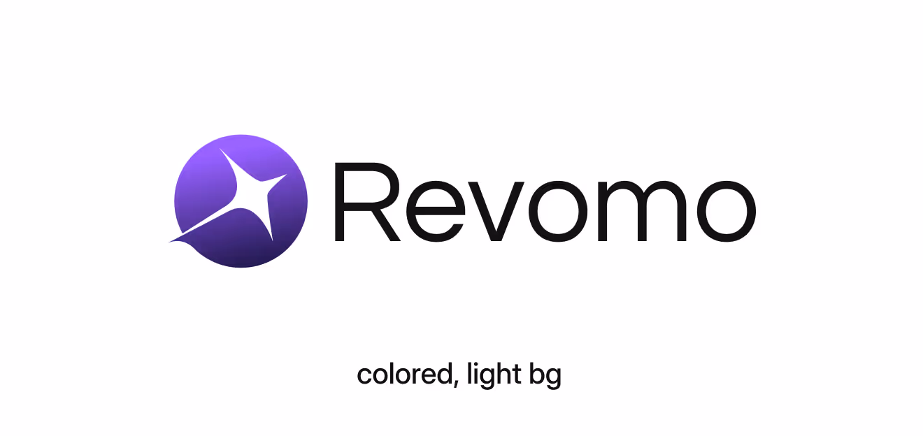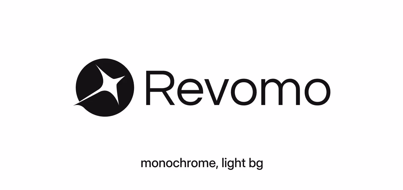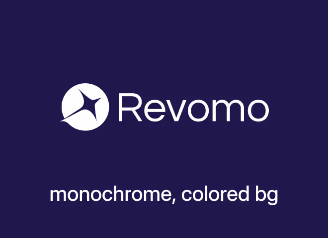 Revomo's logo includes four color variants: two colored (light and dark backgrounds) and two monochrome (light and dark backgrounds). Use the colored versions on corresponding light and dark backgrounds for optimal contrast. The monochrome variants can also be used on colored backgrounds, but ensure sufficient contrast to maintain clarity and visual impact. Refer to the examples below for guidance.