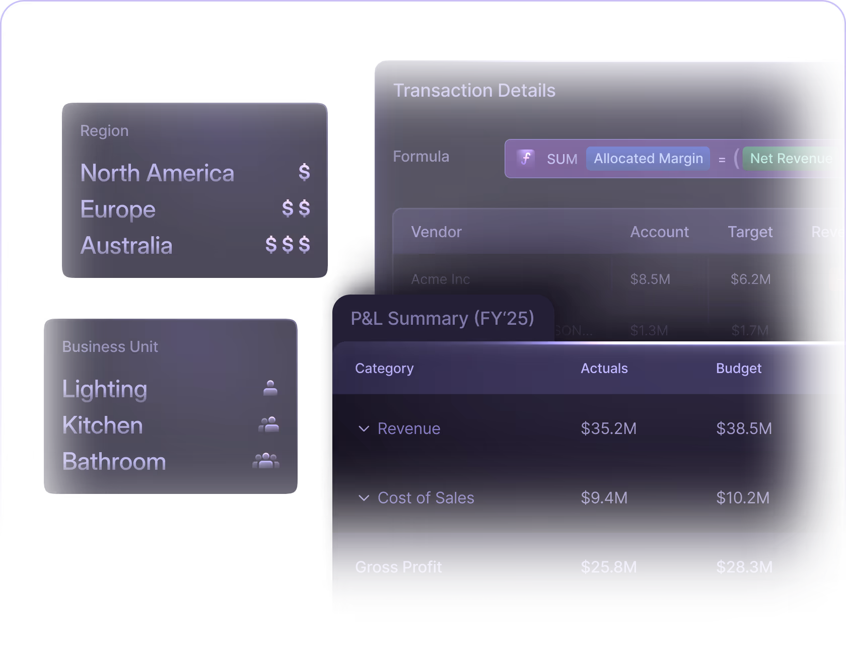 Drill into actuals vs. budget by product, customer, or region for granular visibility.